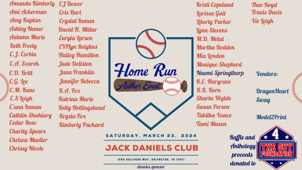 Join me for a day filled with literary magic, bookish delights, and unforgettable moments. Let’s make March 23, 2024, a Home Run for readers and authors alike!